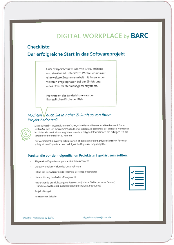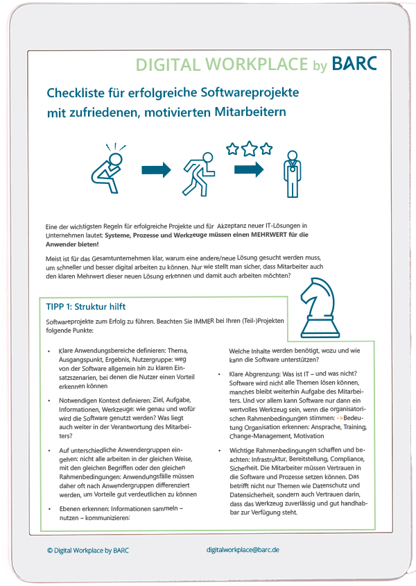 Wir freuen uns, Ihnen mit dem BARC Guide Digital Workplace Anregungen für die Gestaltung Ihrer Projekte geben zu können: